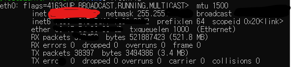 빨간색으로 가려준 부분에 적인 숫자가 ip입니다. 255.255.255.255 형식으로 적혀있습니다.